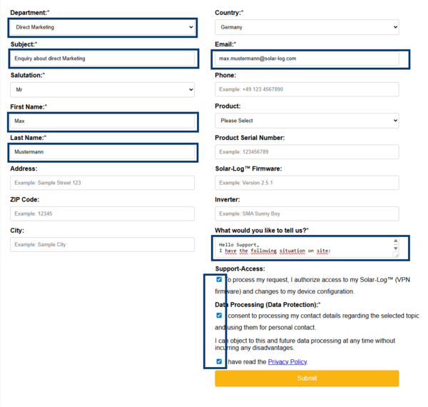 Thanks to the implemented VPN function and P2P connection with the marketing partner, the Solar-Log™ direct marketing gives you a package from a single source. The processes between the marketing partner and Solar-Log™ are coordinated and integrated in such a way that you can track the processing status at any time via the direct marketing portal, saving yourself annoying mail communication. Combined with the revenue calculator, you can seamlessly integrate all steps from the offer to the implementation.