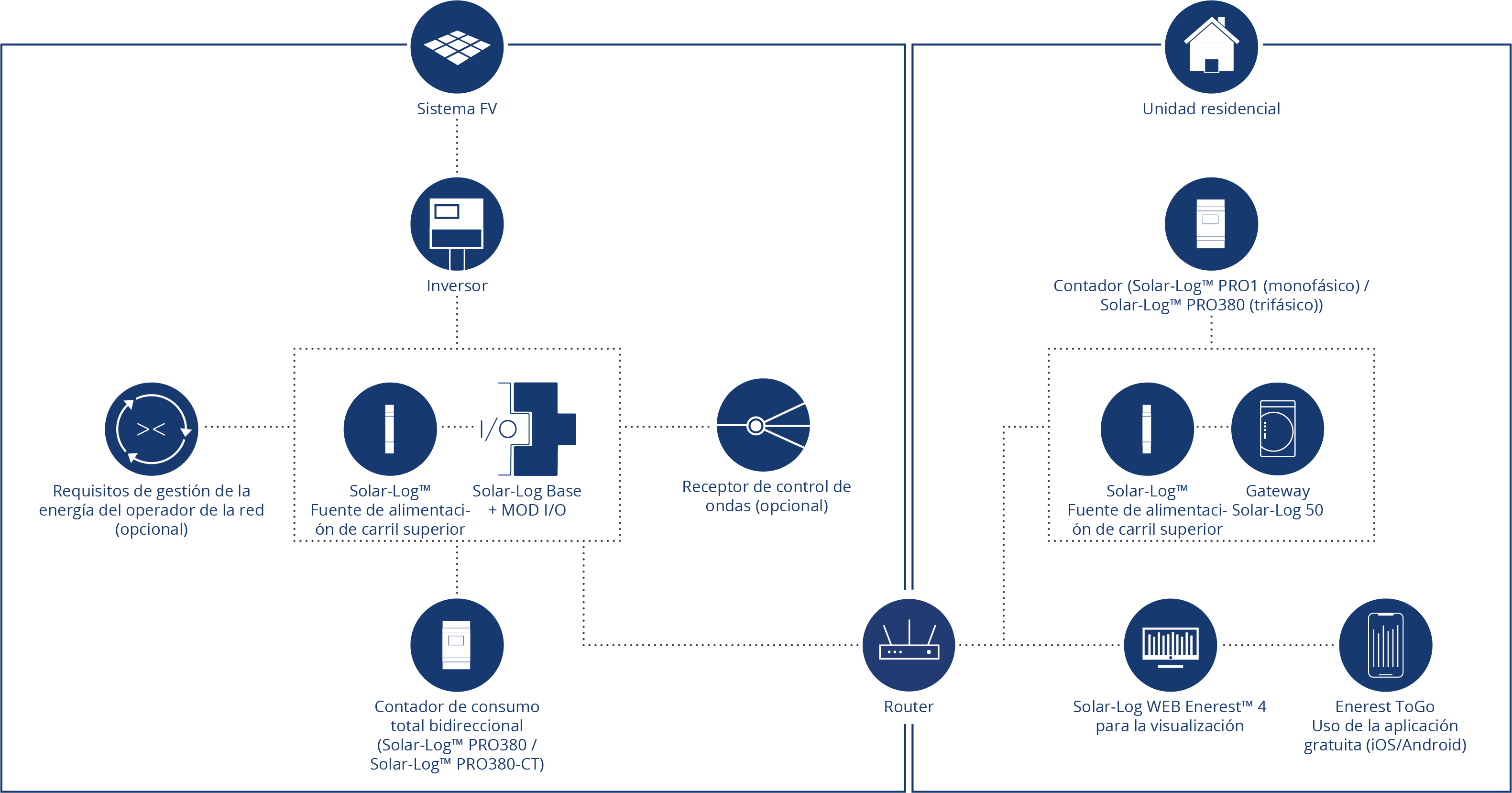Para poder visualizar el consumo y el autoconsumo en proyectos conjuntos más grandes y para diferentes grupos de usuarios, Solar-Log™ ofrece el concepto Smart Visual. Entre otras cosas, puede utilizarse para cumplir los requisitos de los programas de subvenciones (por ejemplo, la subvención KfW 40 Plus).