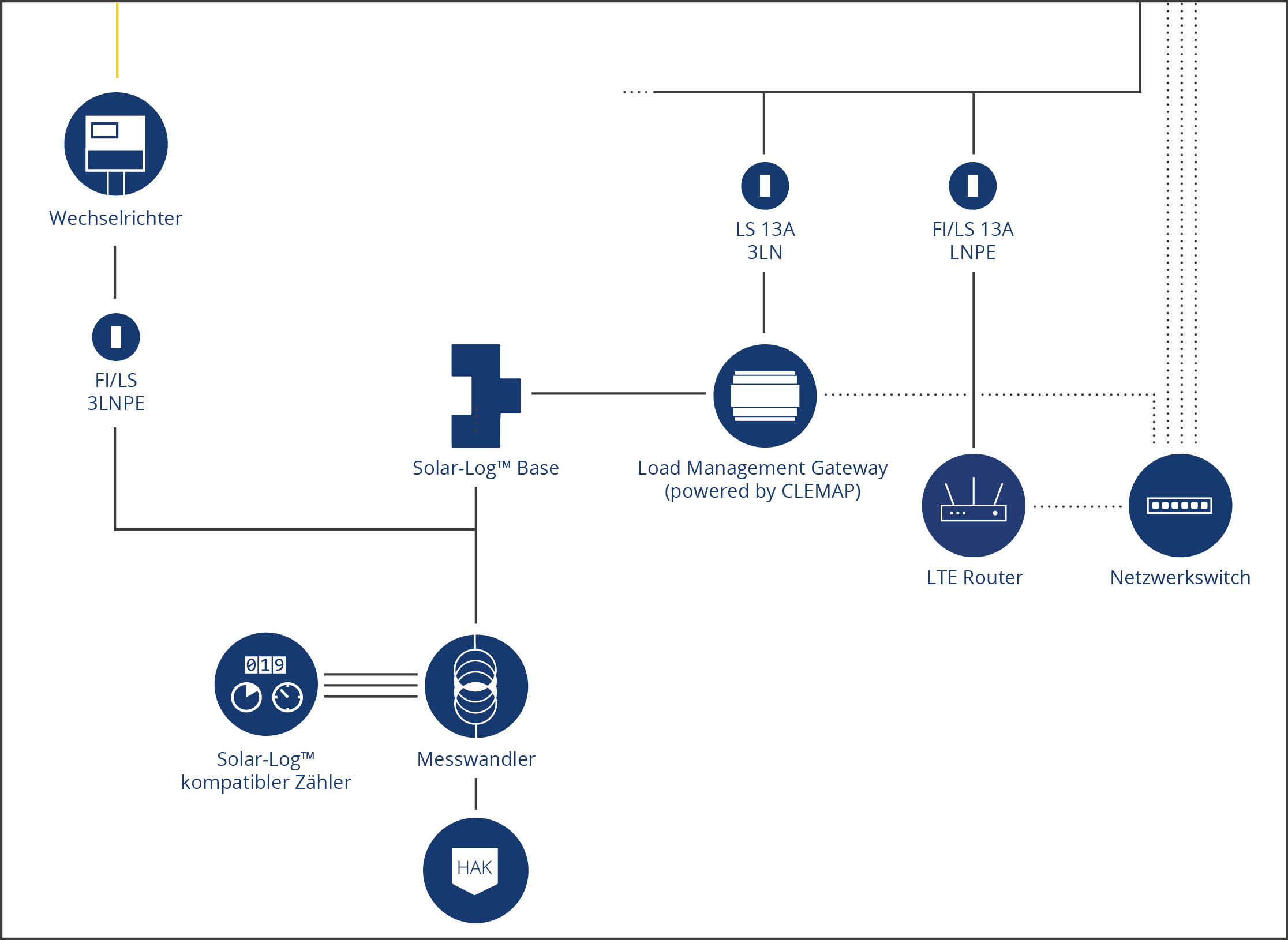 Für den Einsatz der Solar-Log™ Ladeparkmanagementlösung powered by Clemap sind Hardware- und Software-Komponenten erforderlich. Die benötigten Lizenzen und Geräte richten sich nach den jeweiligen Installationsmerkmalen.